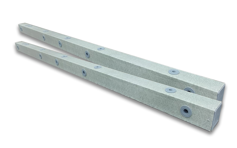 Cruceta ultraliviana fabricada en PRFV, diseñada para máxima durabilidad y resistencia en exteriores. Es inmune a la corrosión y a la niebla salina, no conduce electricidad y facilita el transporte e instalación. Su vida útil estimada es de hasta 80 años, ofreciendo una solución confiable y de bajo mantenimiento.