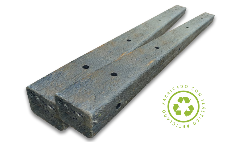 Cruceta fabricada con madera plástica reciclada, un material ecológico y de alta durabilidad. No requiere mantenimiento, resiste humedad, plagas y no se astilla ni se deforma con el tiempo. Su fabricación a partir de plástico reciclado la convierte en una alternativa sostenible con una vida útil superior a 50 años.