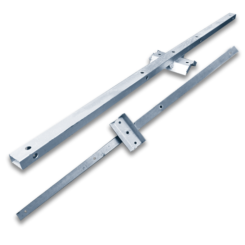 Cruceta pasante construida en tubo 80x80x2mm. Mordazas reforzadas.